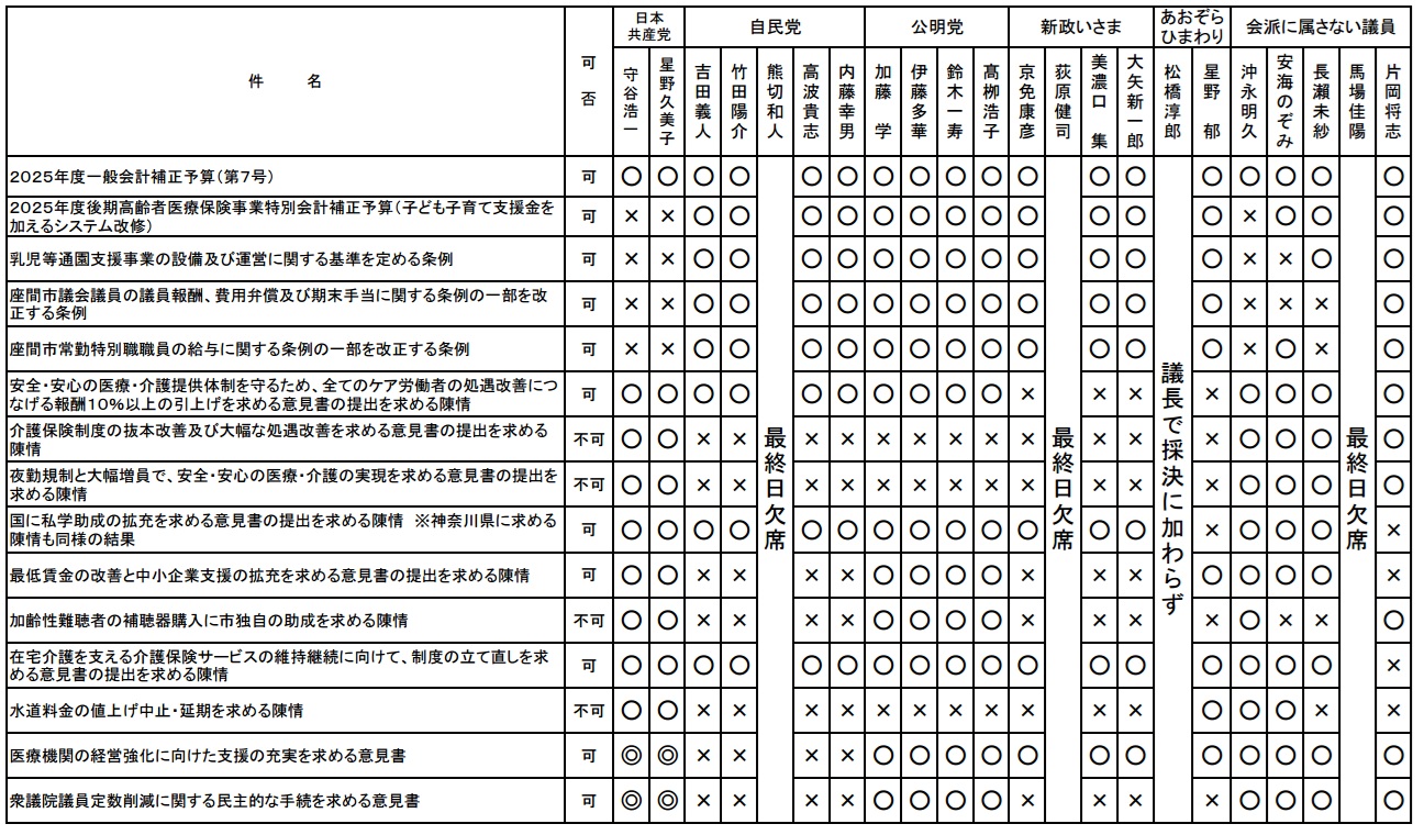2025年第4回定例会 主な表決結果